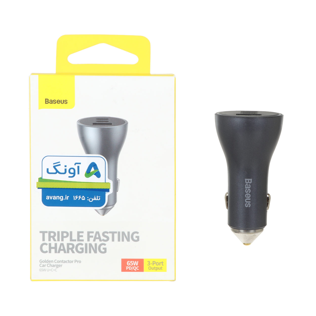 شارژر فندکی 65 وات فست و PD سه پورت Baseus مدل Golden Contactor Pro CCJDZ65-UC - خاکستری
