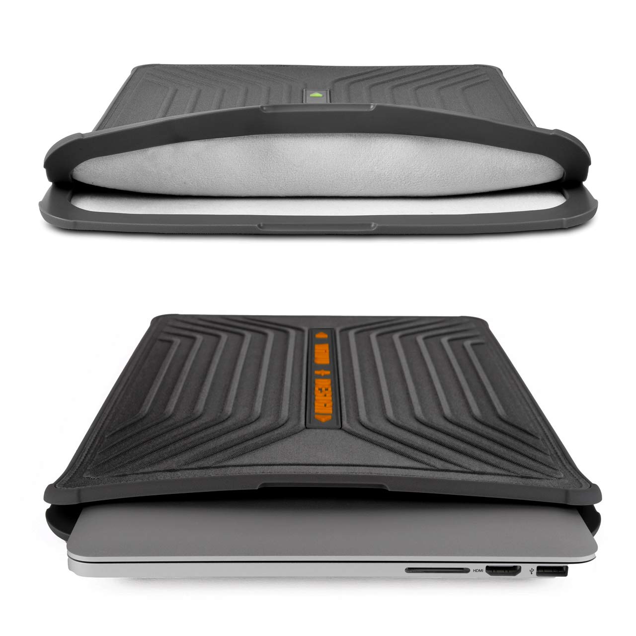 حفاظت سهلایه پیشرفته: ساختار این کاور شامل سه لایه مجزا است: ۱) لایه بیرونی ضد آب و مقاوم در برابر لک ۲) لایه میانی تقویتشده و نیمه سخت برای مقاومت در برابر فشار و ضربات مستقیم ۳) پوشش داخلی نرم و مخملی برای جلوگیری از ایجاد خراشهای ریز روی سطح آلومینیومی دستگاه.