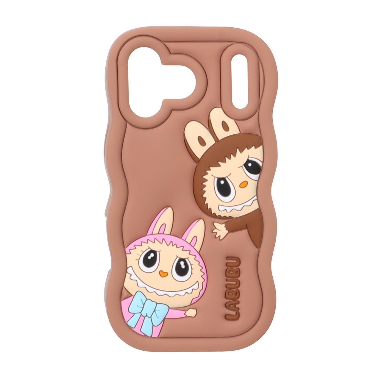 قاب سیلیکونی کنگره ای Labubu برجسته فانتزی Apple iPhone 17 Pro Max - قهوه ای