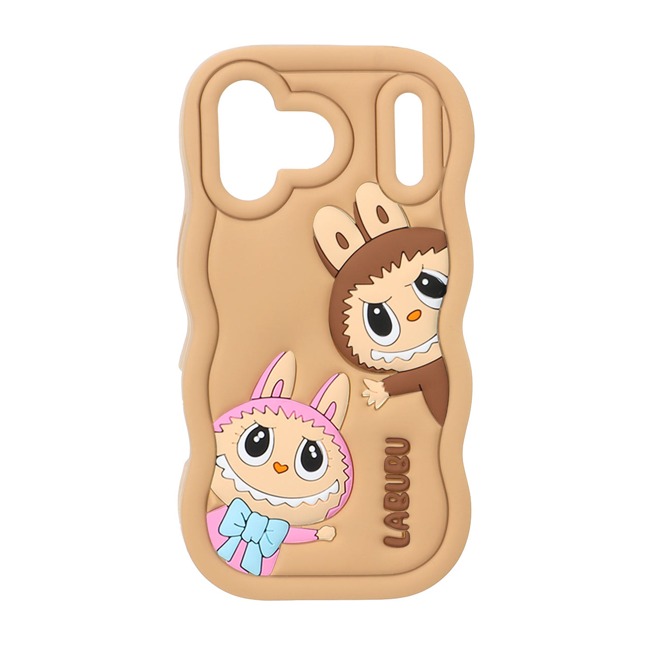قاب سیلیکونی کنگره ای Labubu برجسته فانتزی Apple iPhone 17 Pro Max - عسلی