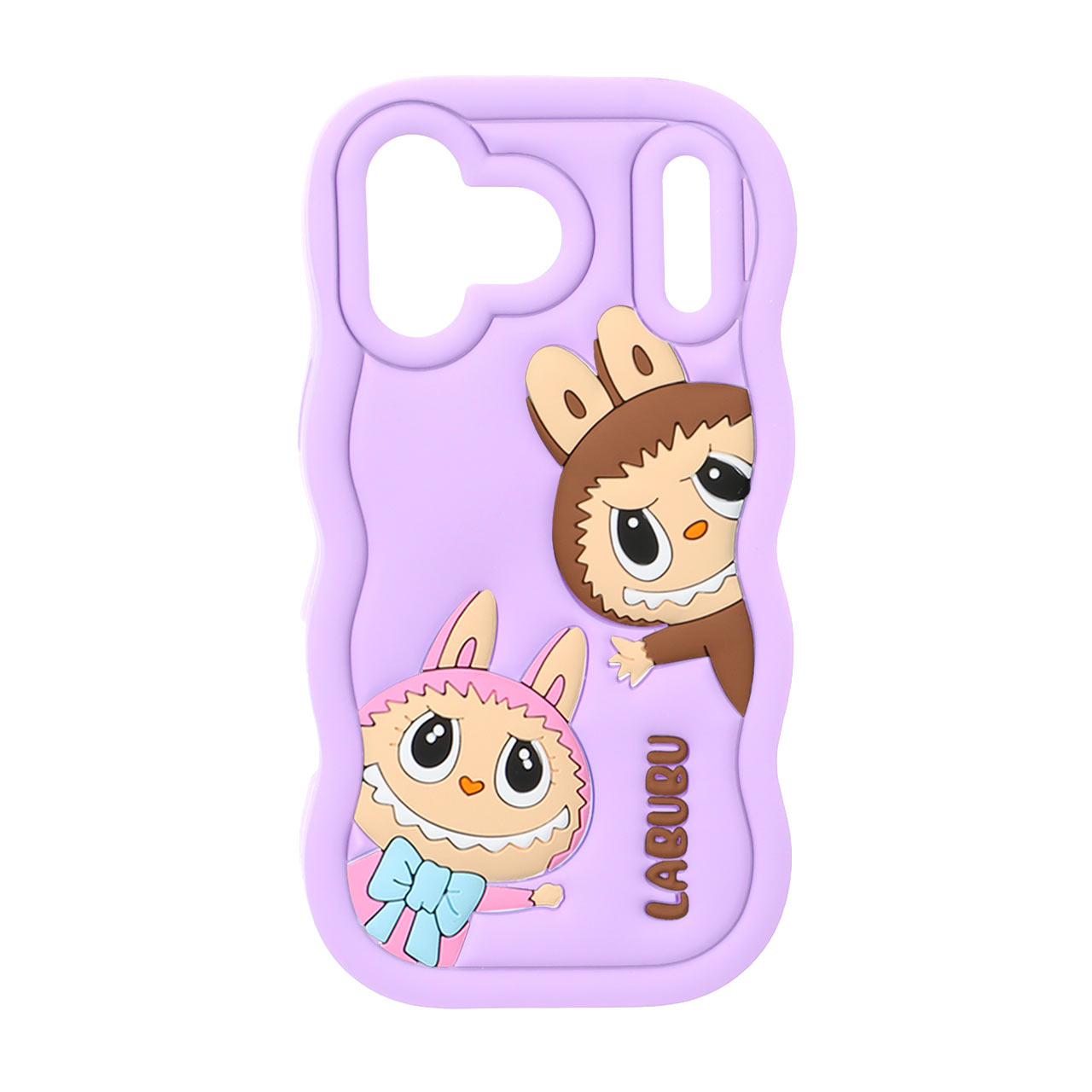 قاب سیلیکونی کنگره ای Labubu برجسته فانتزی Apple iPhone 17 Pro Max - بنفش روشن