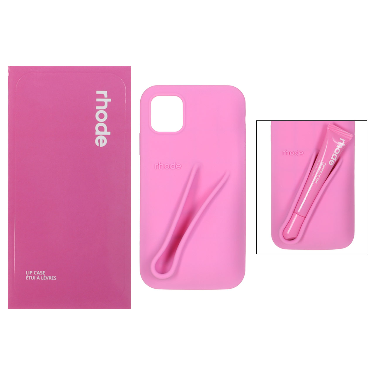 قاب سیلیکونی پاک کنی اورجینال rhode با ست لیپ گلاس Apple iPhone 11 - صورتی