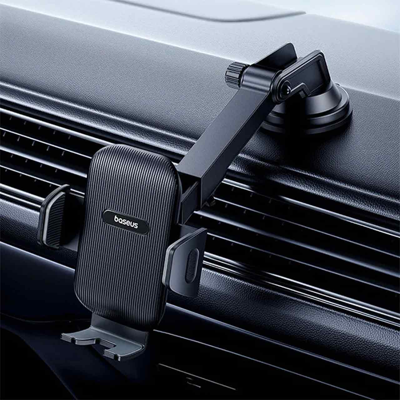 هولدر Baseus BS-CM025 با قفل مکانیکی، پایه مکشی قوی و بازوی تلسکوپی. قابلیت تنظیم ۳۶۰ درجه و سازگاری با داشبورد و شیشه. نهایت پایداری در رانندگی. خرید از جانبی استور.