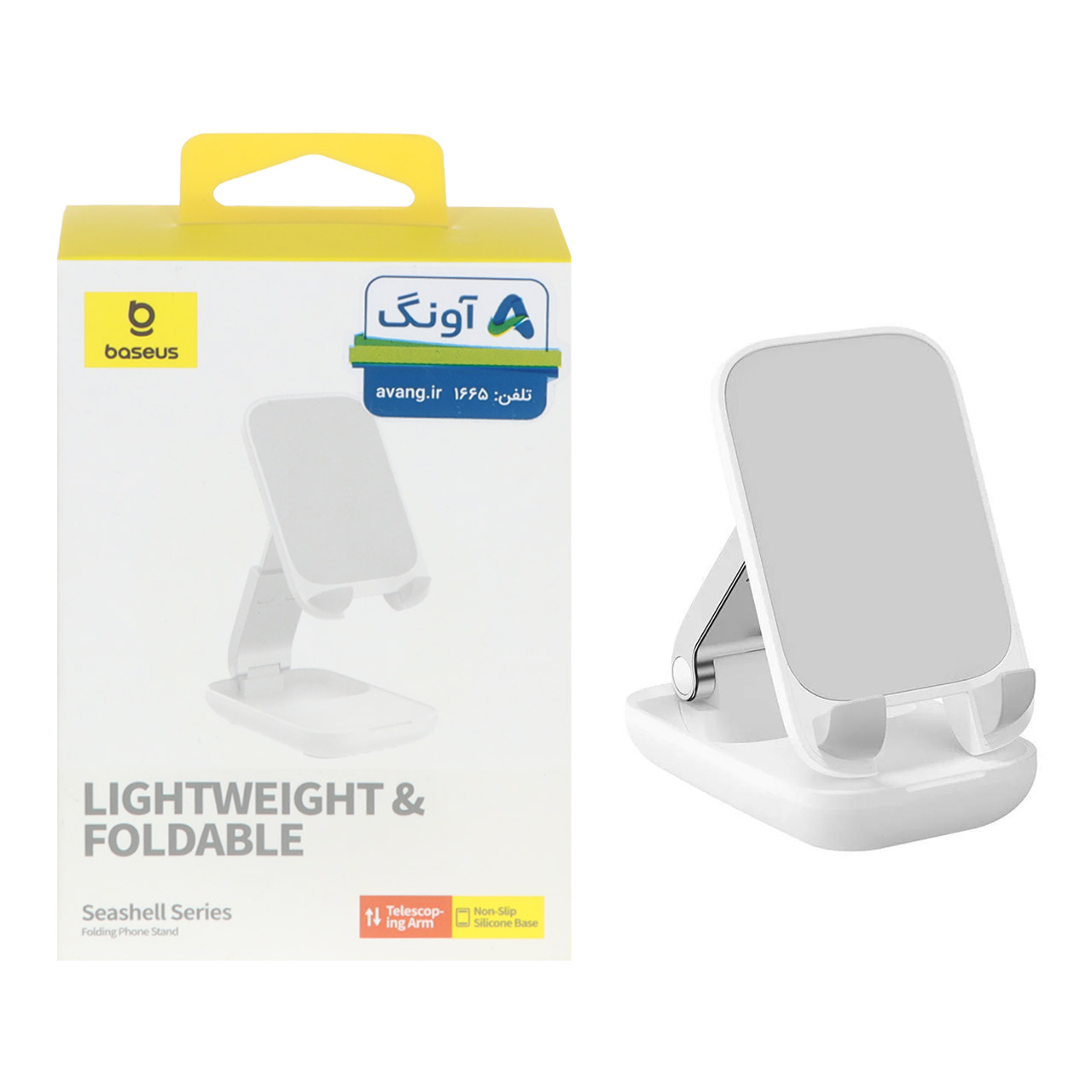 هولدر رومیزی Baseus مدل Seashell BS-HP008 با طراحی تاشو و زاویه دید قابل تنظیم. مناسب گوشی و تبلتهای کوچک. نگهدارنده ایمن و سبک برای کار و تماشای محتوا. خرید از جانبی استور.