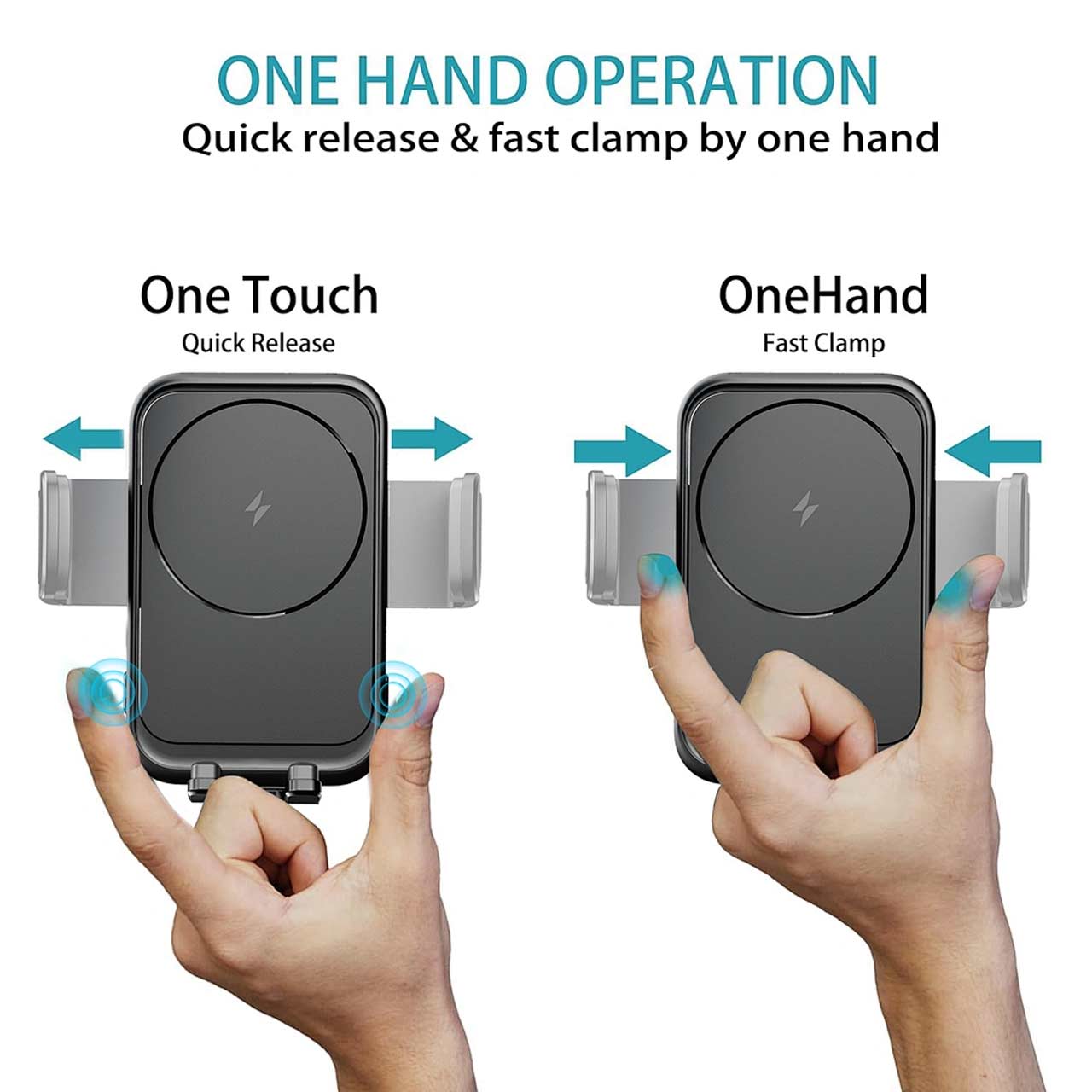 هولدر دریچه کولری Wiwu CH-321 Almighty Series با شارژر وایرلس ۱۵W و قفل خودکار (Auto Clamping). چرخش ۳۶۰ درجه برای ایمنی رانندگی. نصب آسان و مطمئن. خرید از جانبی استور.