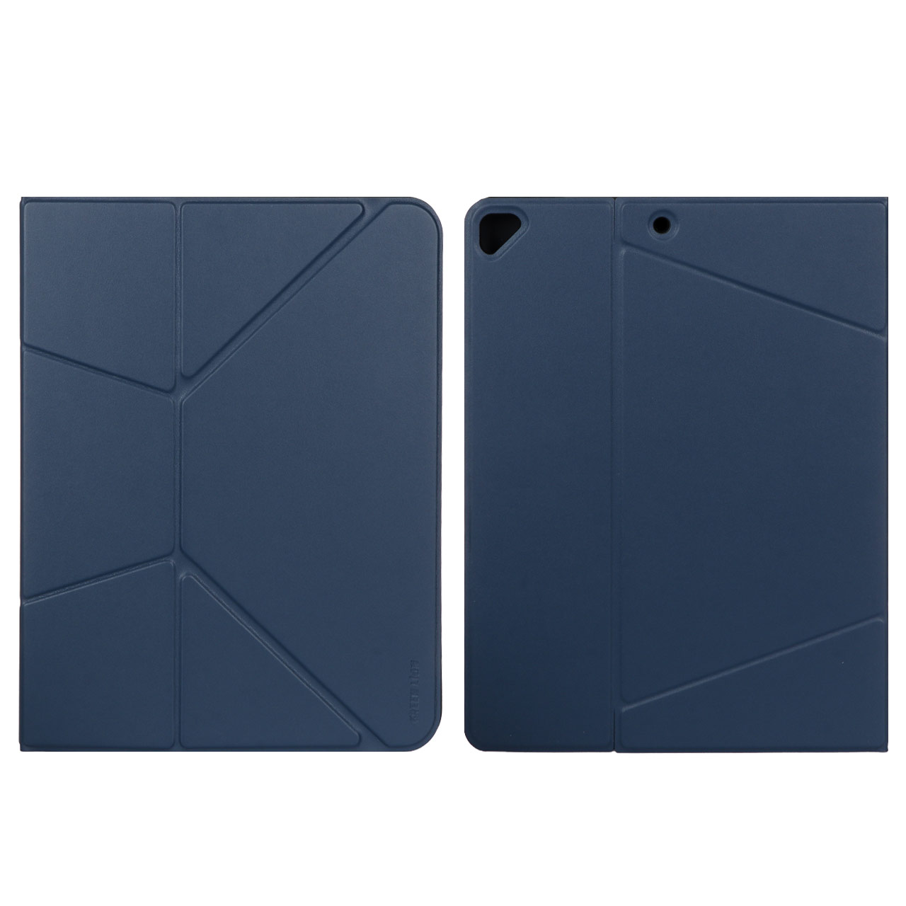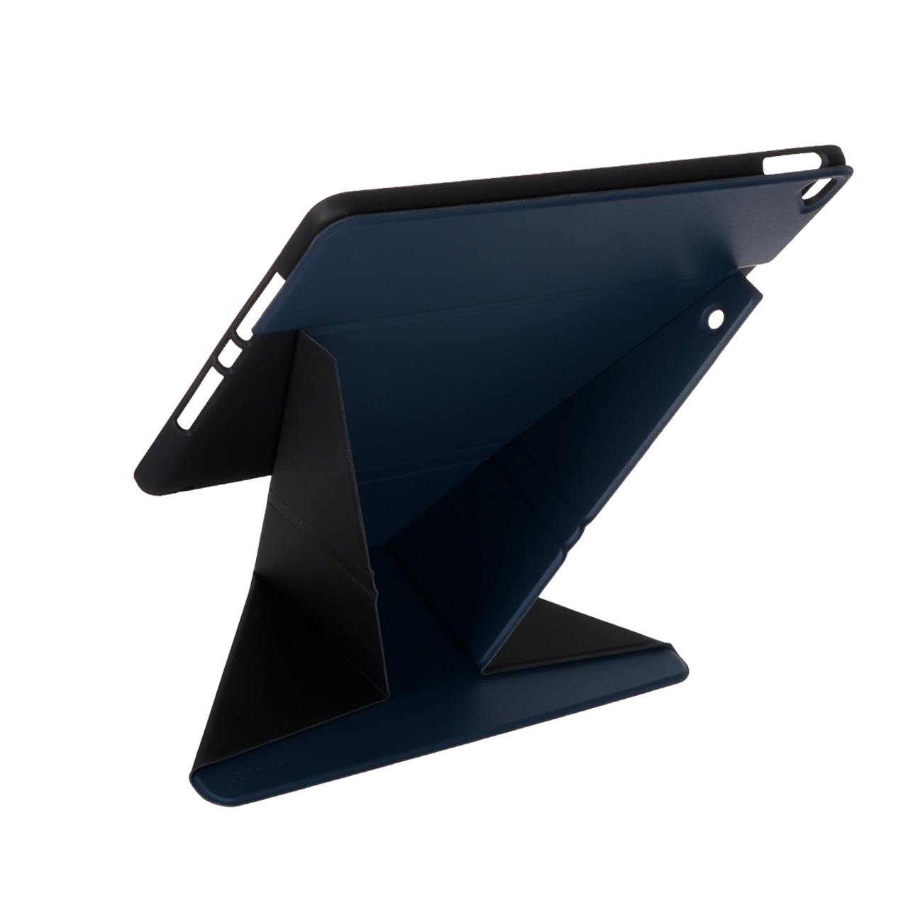 این کاور از چرم مرغوب (Premium Leather) در نمای بیرونی ساخته شده که علاوه بر حس لوکس بودن، دوام بالایی دارد و در برابر خط و خش مقاوم است. قسمت داخلی آن مجهز به یک لایه TPU نرم است که به عنوان محافظ ضدشوک عمل میکند. طراحی کلاسوری (Folio) و رنگ آبی این مدل، ظاهری رسمی و جذاب به آیپد ۱۰.۲ اینچی میبخشد. همچنین، ویژگی بارز این کاور، طراحی چند زاویهای تاشو (Multiple Folding Designs) است که به آسانی به یک استند پایدار برای تماشای ویدئو یا تایپ تبدیل میشود. محل قرارگیری دقیق قلم اپل نیز درون کاور تعبیه شده است تا همیشه در دسترس باشد.