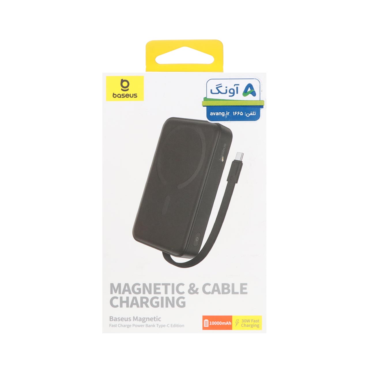 پاوربانک مغناطیسی Baseus PPCXM10T با ظرفیت ۱۰۰۰۰ میلیآمپر و توان ۳۰ وات. شارژ وایرلس ۱۵ وات (MagSafe) و باسیم PD/QC. طراحی سبک و نمایشگر دیجیتال. خرید از جانبی استور.