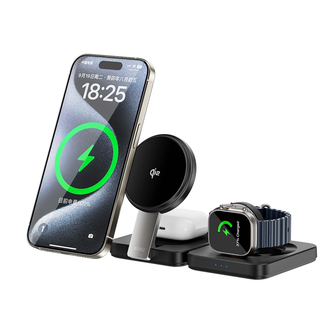 شارژر وایرلس سه کاره Wiwu مدل QI2 Wi-W028 - مشکی