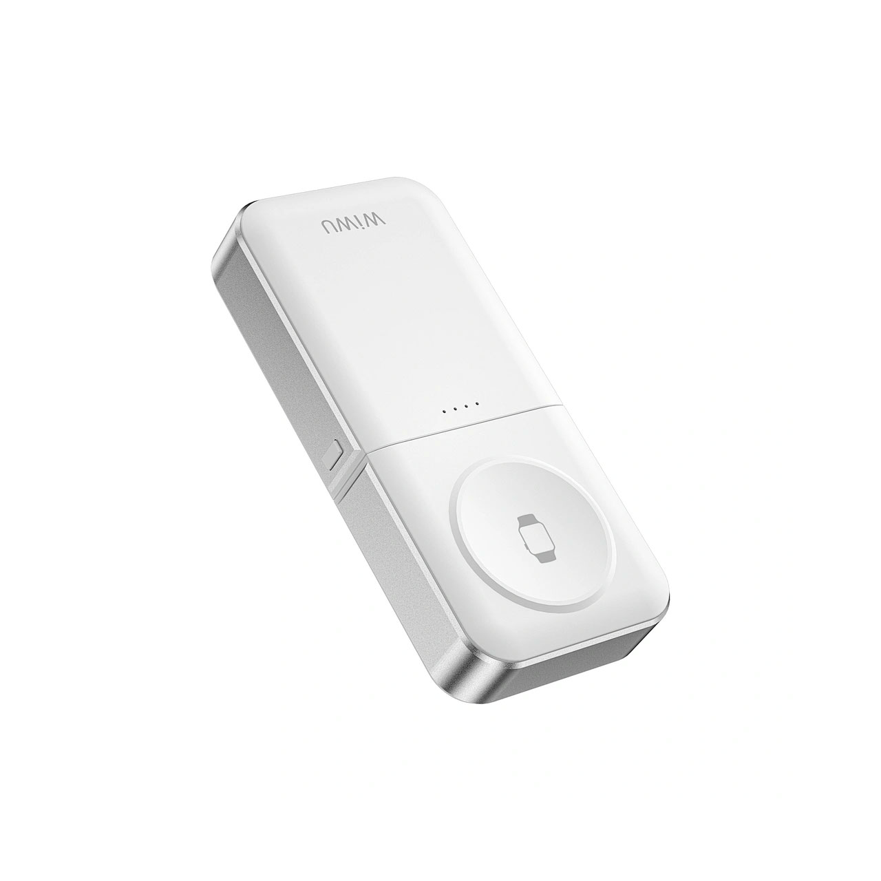 شارژر بیسیم Wiwu WI-M21 Elf؛ ۳ در ۱ قابل حمل با باتری ۱۱۰۰mAh. مناسب برای شارژ Apple Watch, iPhone, AirPods (یا دیگر دستگاهها). کوچک، سبک و مگنتی. خرید از جانبی استور.